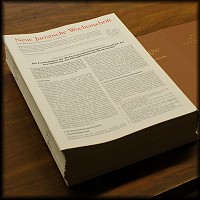 Für das Binden von Zeitschriften benötigen wir 8 Arbeitstage. Dabei spielt es keine Rolle, ob die Zeitschrift in Bibliotheksleinen oder in eine original Einbanddecke des jeweiligen Verlages eingebunden wird.